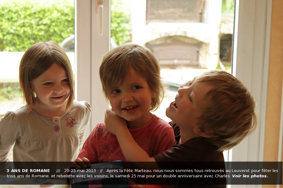 20 et 25 mai 2013  //  Anniversaire de Romane au Louverot avec les cousins et à Cran-Gevrier avec les voisins.