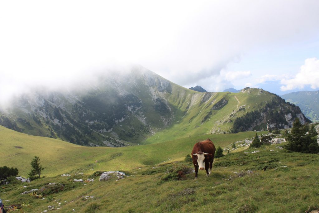 Cette année, le 20 août, nous sommes partis pour l’ascension du Mont Colombier d’où la vue sur les Bauges est imprenable. En montant, nous avons pu observer des marmottes, deux Patous qui protégeaient un petit troupeau de chèvres et plusieurs chocards à bec jaune qui s’amusaient avec les vents assez forts au sommet du Colombier.