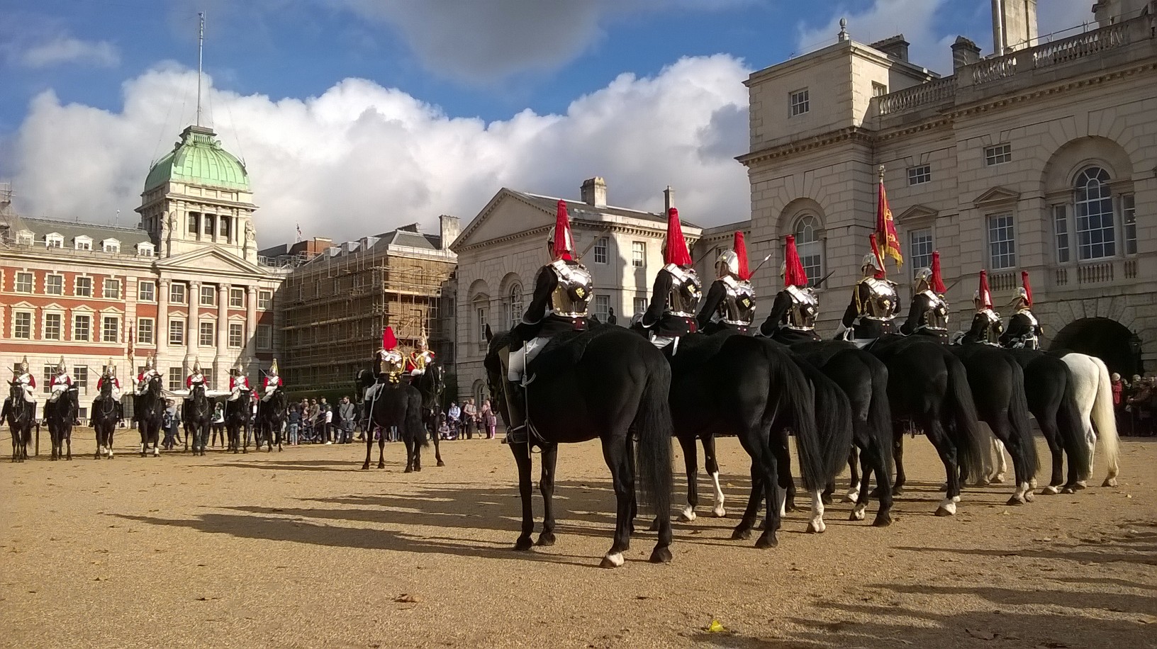 Nous avions rendez-vous à Victoria pour voir la relève de la garde avec Aurore, une copine de classe, et ses parents Alexandre et Christel. Retard dans le métro, on se loupe à l’arrivée. Ensuite Malaure se rend compte qu’on n’assiste pas à la relève de la même garde : Aurore est à Buckingham Palace et nous à la relève des horse guards à cheval un peu plus loin. Aurore abandonne car trop de monde. Gaspard filme ce spectacle. Nous vous raconterons la suite dans un autre article tant on a fait de choses.
