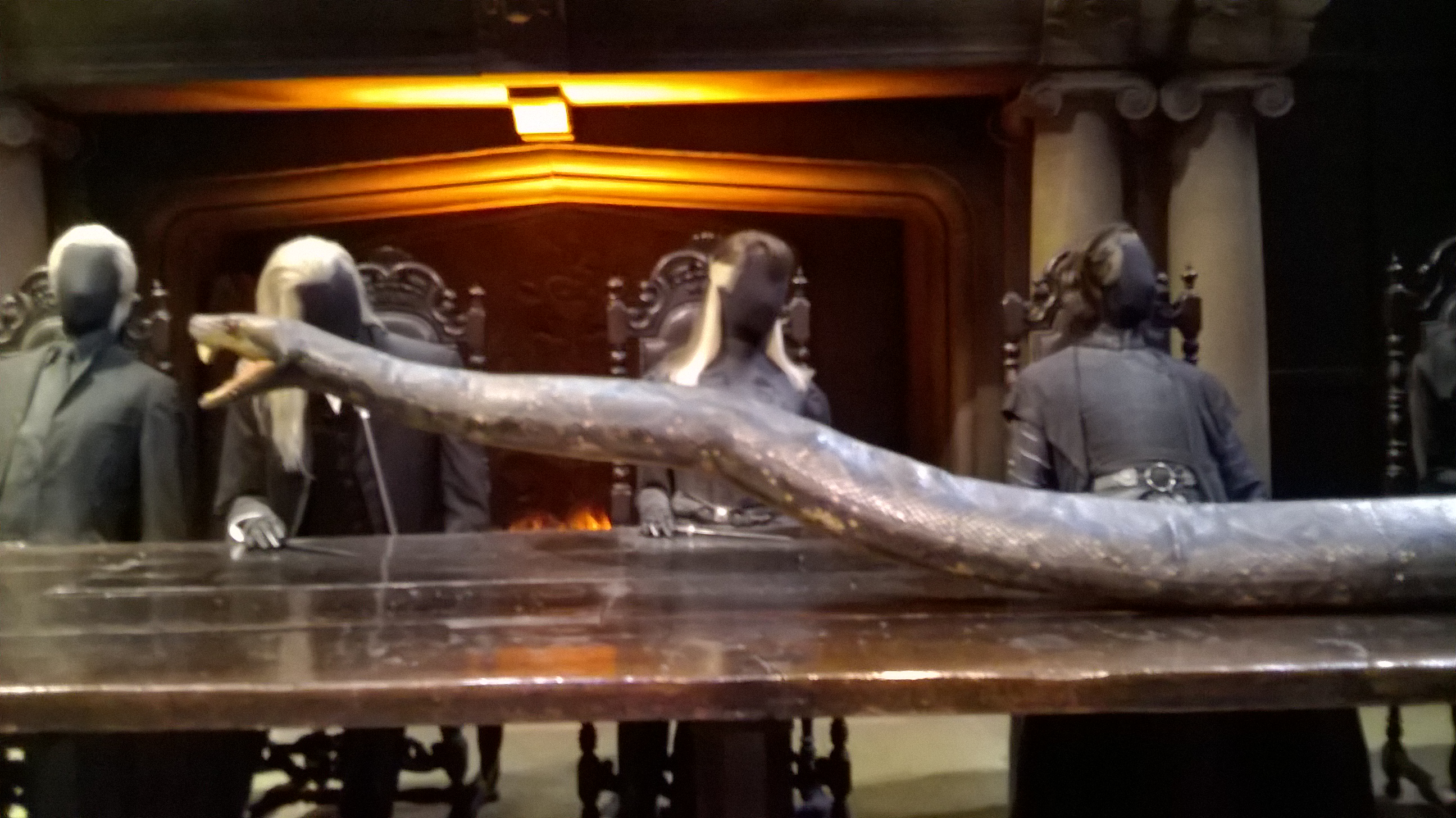 14. La maison des Malefoy avec la mise en scène réaliste d’une réunion des Mangemort dirigée par Voldemort, plus une armoire à disparaître.