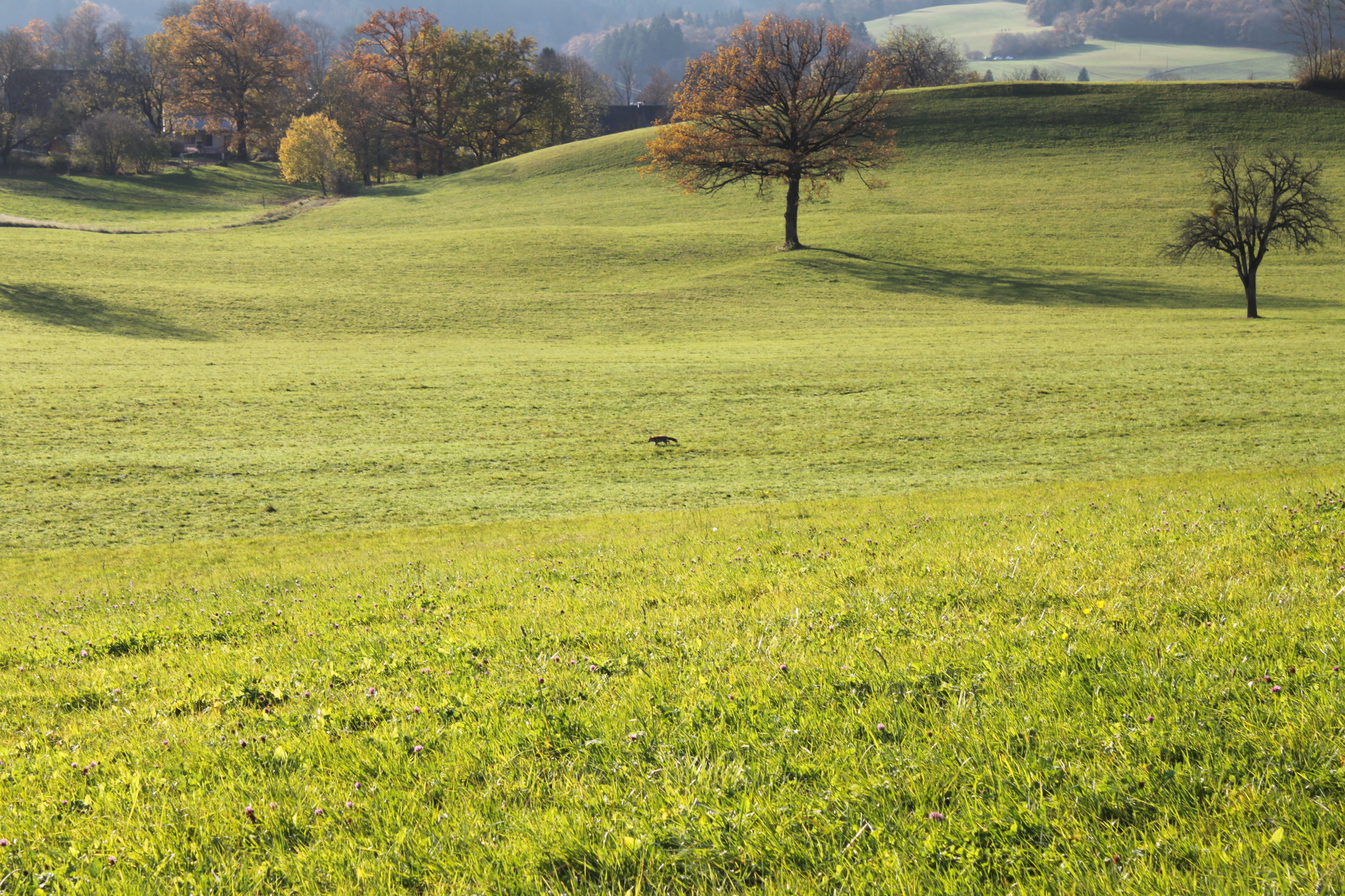 Depuis la maison ou lors de balades, nous découvrons ou redécouvrons les paysages des Bauges. A 16h, nous surprenons même un renard !
